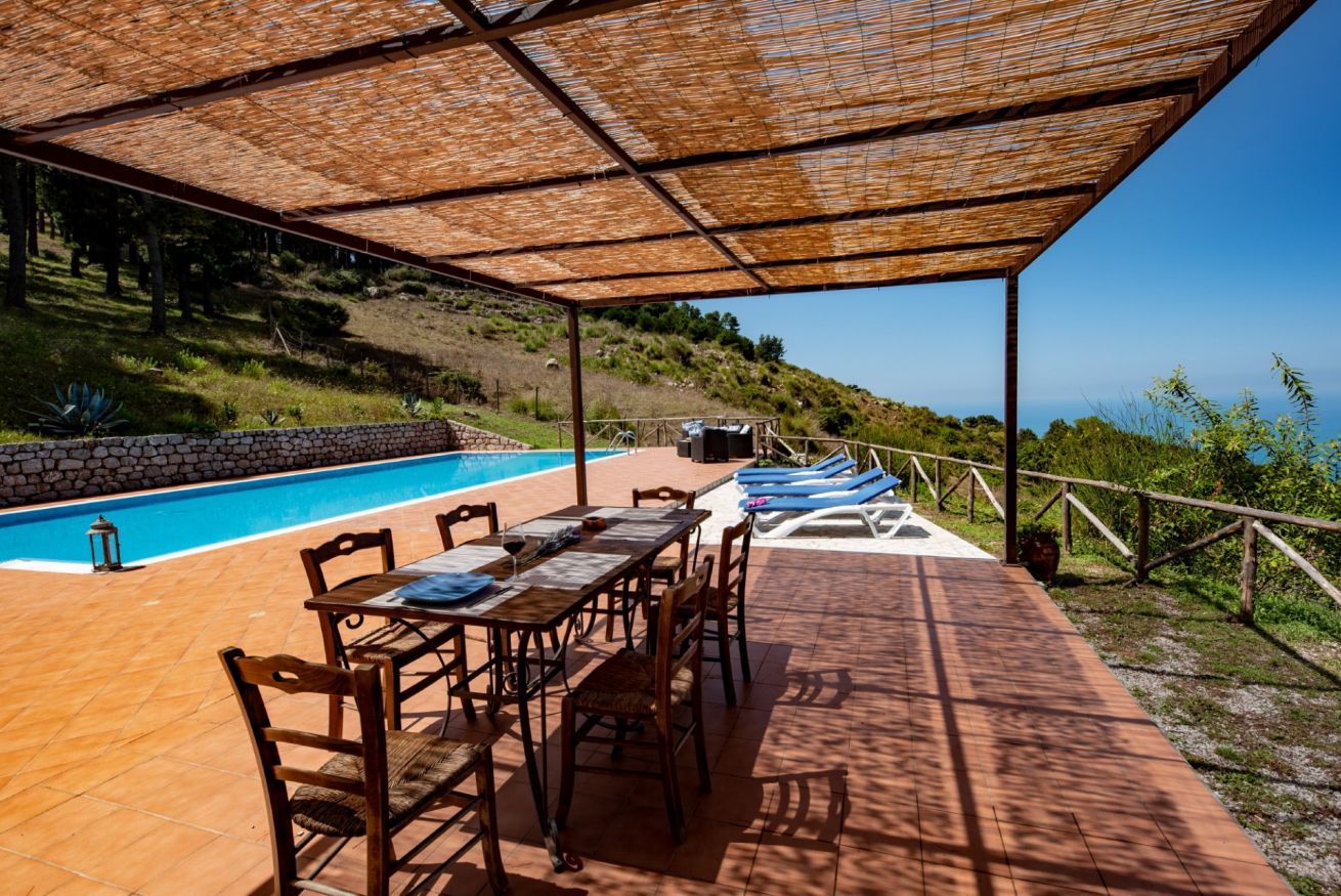 La Collina dei Nebrodi is a large villa with vineyard in exclusive location with views over the coast and over the Aeolian Islands. The villa is dedicated to the stay of groups of friends and families. It has a swimming pool, bbq and kitchen, fireplace, bar station and many other spaces to share precious moments with loved ones. Contact me to know extra services and to personalise your holiday. The immense property will allow you to take secret paths into the pristine nature of the Nebrodi Park.